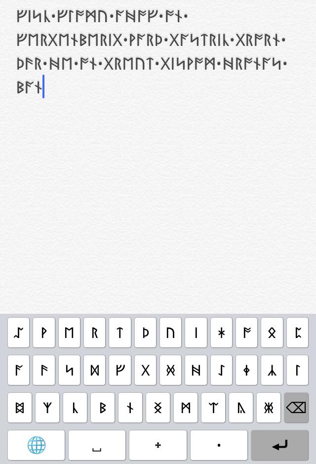 Type unicode runes on your iPhone or iPad. Doesn’t rely on sending images or extra data. Communicate in extinct Germanic languages or for fun, write modern English using runes! We recommend spelling phonetically instead of trying to recreate the modern spelling. If the phoneme is missing, a voiced/unvoiced version can be used in many cases (e.g., using ᚠ for v sounds)